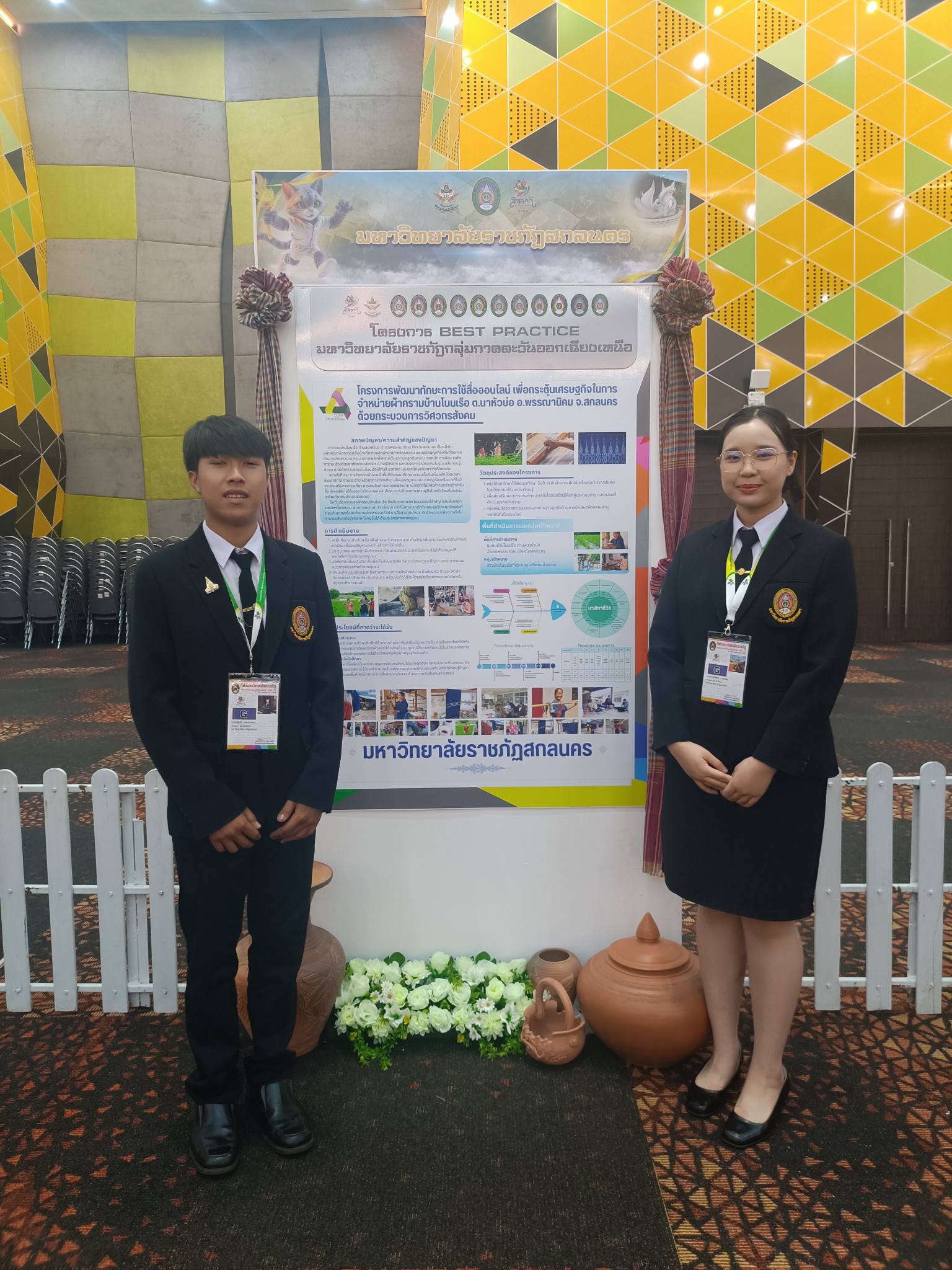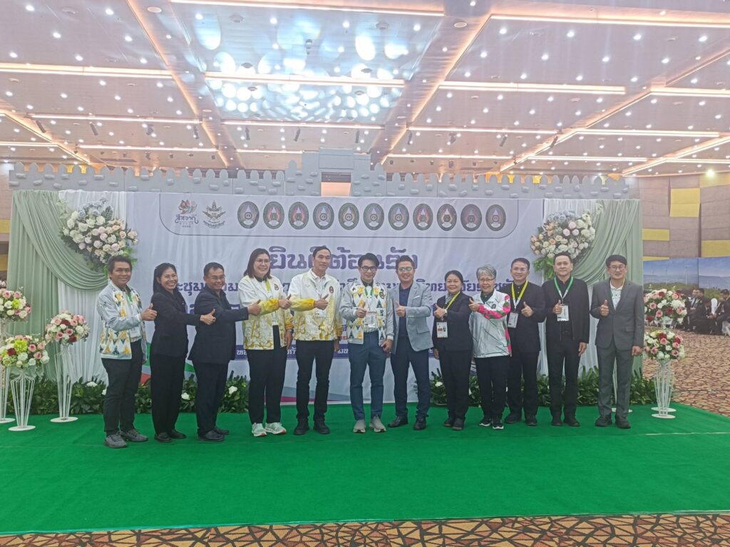 ผู้ช่วยศาสตราจารย์ชาคริต ชาญชิตปรีชา อธิการบดีมหาวิทยาลัยราชภัฏสกลนคร อาจารย์ ดร.พรเทพ เสถียรนพเก้า รองอธิการบดี พร้อมด้วยนางวาสนา จักรศรี ผู้อำนวยการกองพัฒนานักศึกษา ร่วมถ่ายภาพให้กำลังใจผู้นำนักศึกษา ในการประชุมสมาพันธ์ผู้นำนักศึกษามหาวิทยาลัยราชภัฏกลุ่มภาคตะวันออกเฉียงเหนือ ประจำปีการ 2568 ระหว่างวันที่ 18 – 21 พฤศจิกายน 2568