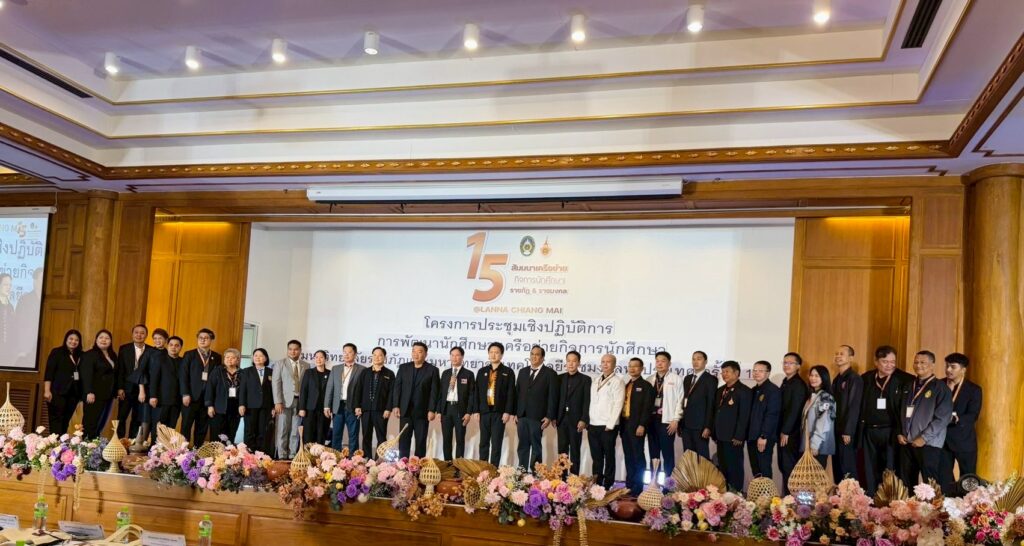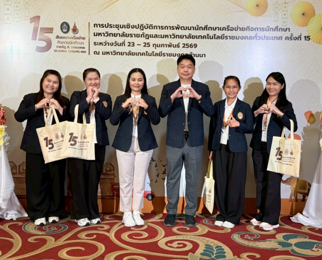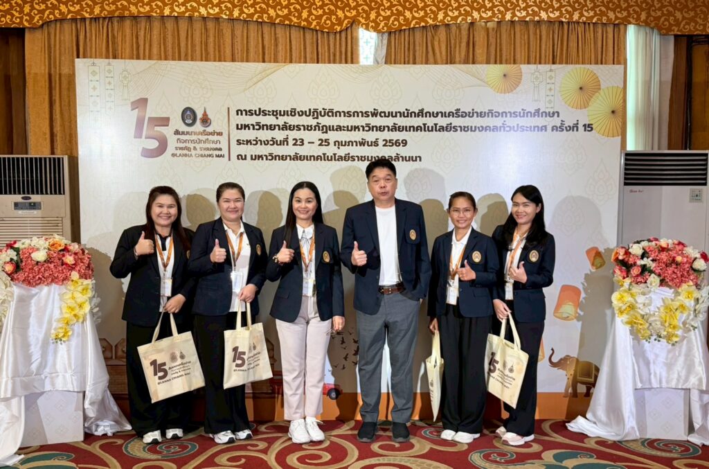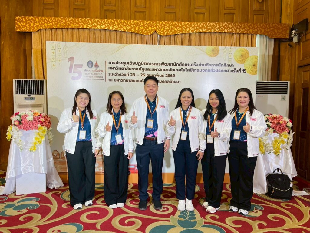 มหาวิทยาลัยราชภัฏสกลนคร นำโดย อาจารย์ ดร.พรเทพ เสถียรนพเก้า รองอธิการบดี พร้อมด้วย อาจารย์ ดร.วินิธา พานิชย์ ผู้ช่วยอธิการบดีฝ่ายพัฒนานักศึกษาและกิจการพิเศษ และบุคลากรกองพัฒนานักศึกษา เข้าร่วม โครงการประชุมเชิงปฏิบัติการ การพัฒนานักศึกษาเครือข่ายกิจการนักศึกษา มหาวิทยาลัยราชภัฏและมหาวิทยาลัยเทคโนโลยีราชมงคล ทั่วประเทศ ครั้งที่ 15 ซึ่งจัดขึ้นระหว่าง วันที่ 23 – 25 กุมภาพันธ์ 2569 ณ ห้องประชุมเรือนคุ้ม โรงแรมคุ้มภูคำ จังหวัดเชียงใหม่