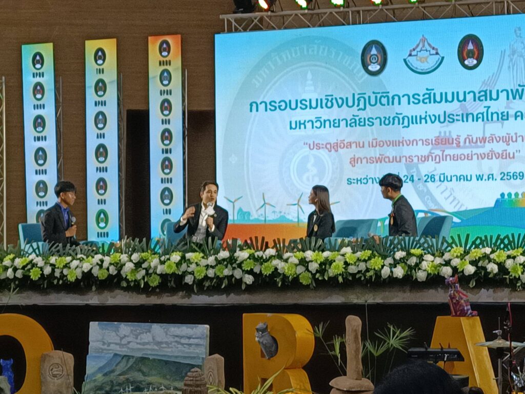 ระหว่างวันที่ 24 – 26 มีนาคม 2569 ณ หอประชุมราชภัฏรังสฤษฎ์ มหาวิทยาลัยราชภัฏนครราชสีมา กองพัฒนานักศึกษา มหาวิทยาลัยราชภัฏสกลนคร นำโดย นายนิรุตย์ วิชาชาติ หัวหน้างานส่งเสริมและพัฒนากิจกรรมนักศึกษา กองพัฒนานักศึกษา พร้อมด้วยทีมผู้นำนักศึกษาเข้าร่วมโครงการอบรมเชิงปฏิบัติการสัมมนาสมาพันธ์นักศึกษามหาวิทยาลัยราชภัฏแห่งประเทศไทย ครั้งที่ 19 “ประตูสู่อีสาน เมืองแห่งการเรียนรู้ กับพลังผู้นำนักศึกษาสู่การพัฒนาราชภัฏไทยอย่างยั่งยืน”