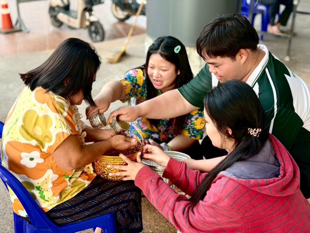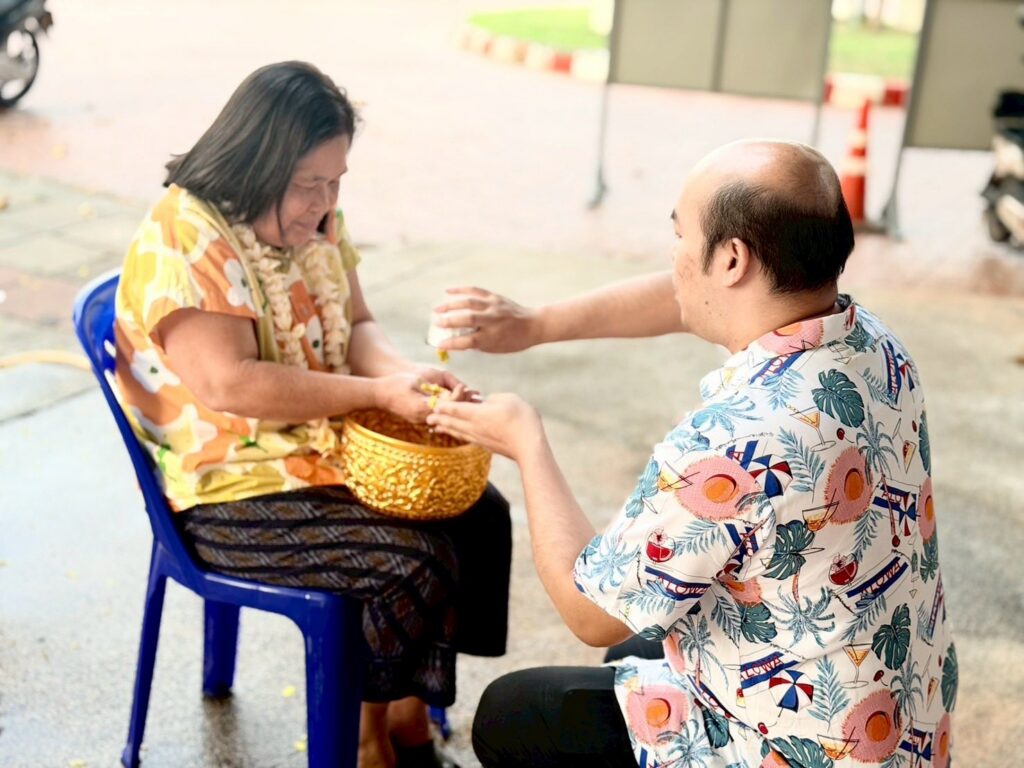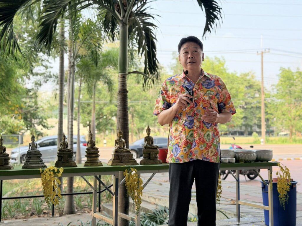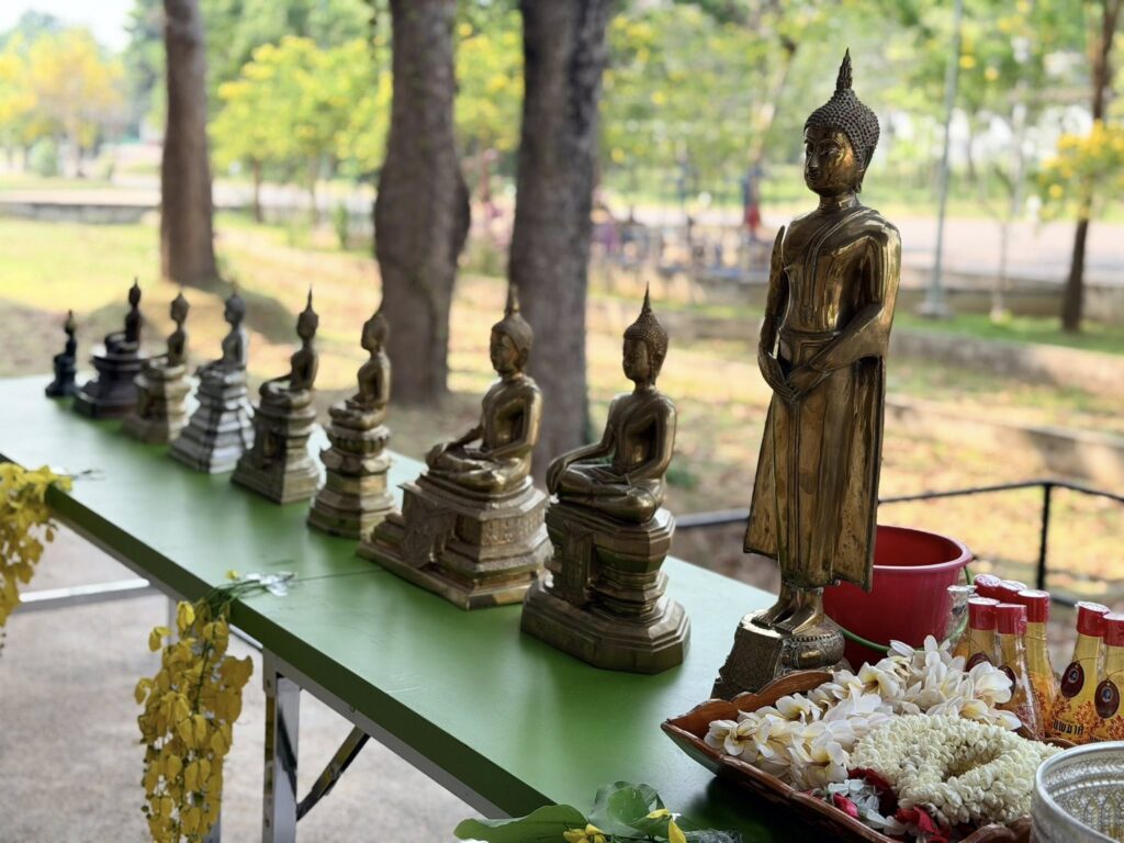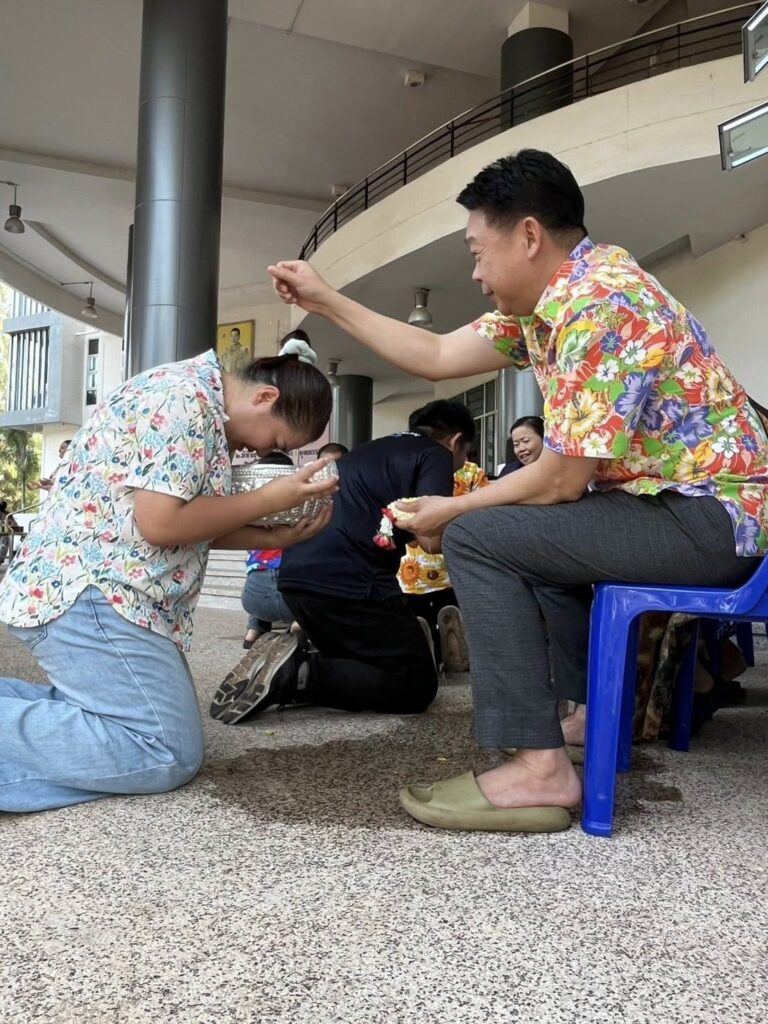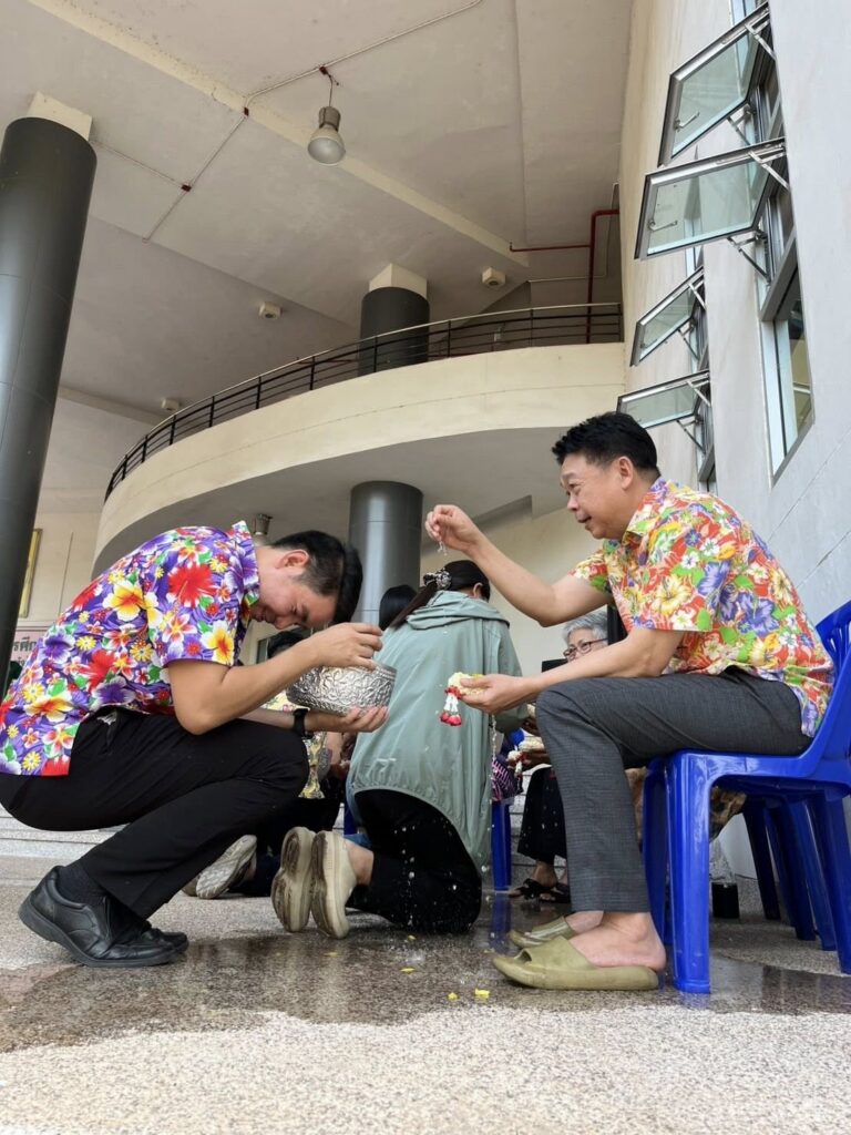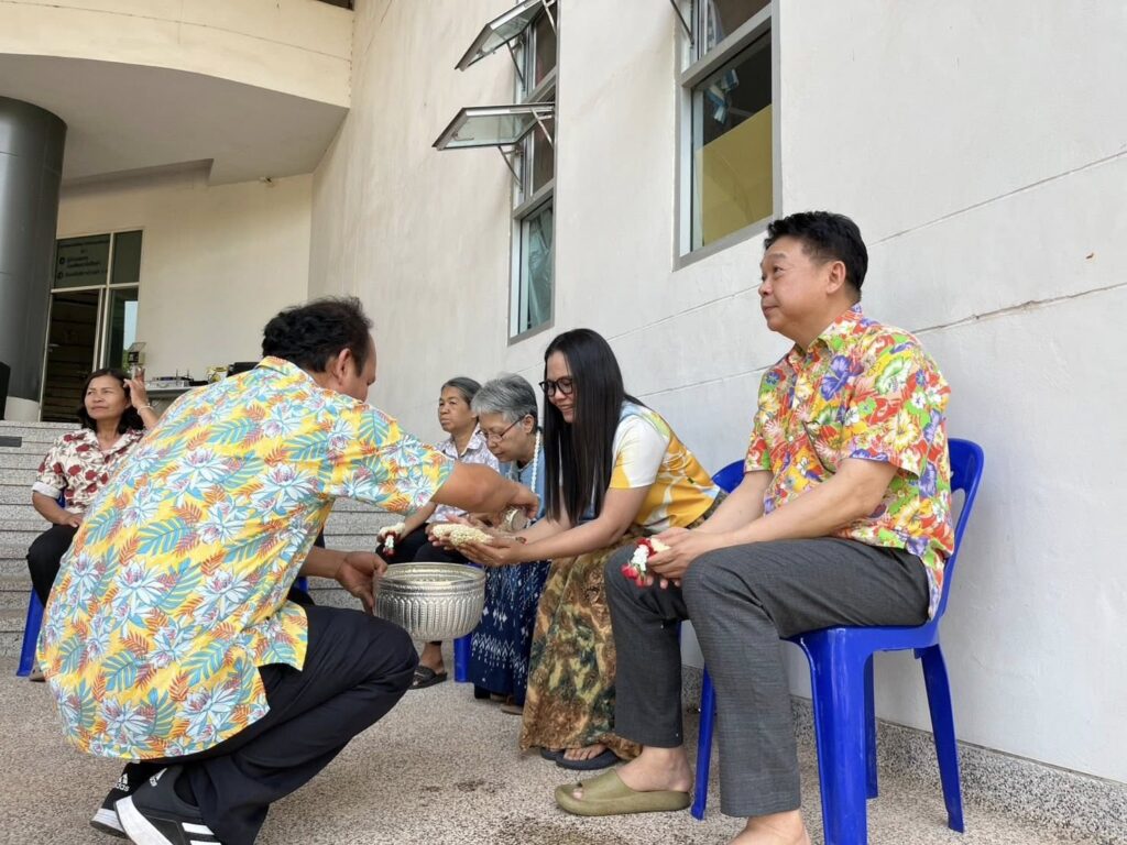 กิจกรรมเริ่มต้นด้วย พิธีสรงน้ำพระพุทธรูป เพื่อความเป็นสิริมงคลและเป็นการเริ่มต้นปีใหม่ไทยด้วยจิตใจที่บริสุทธิ์ จากนั้นพิธีรดน้ำขอพรผู้บริหารกองพัฒนานักศึกษา เพื่อแสดงความกตัญญูกตเวทีและขอขมาลาโทษในสิ่งที่อาจล่วงเกินในปีที่ผ่านมา พร้อมรับฟังโอวาทและคำอวยพรเพื่อเป็นขวัญกำลังใจในการปฏิบัติงาน โดย อาจารย์ ดร.พรเทพ เสถียรนพเก้า รองอธิการบดี