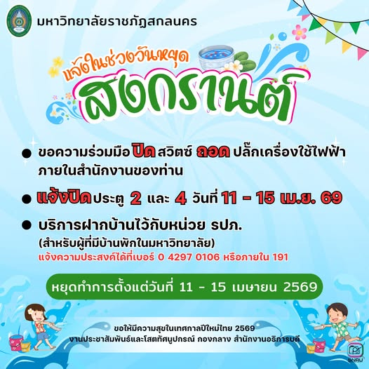 มรสน. แจ้งในช่วงวันหยุดสงกรานต์